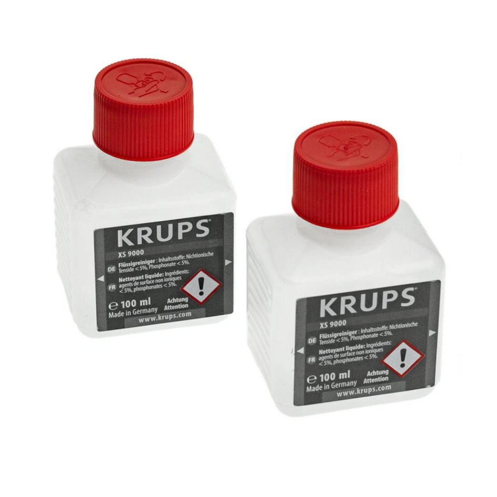 Geliefert werden zwei Flaschen Krups Reiniger für Cappuccino Düsen