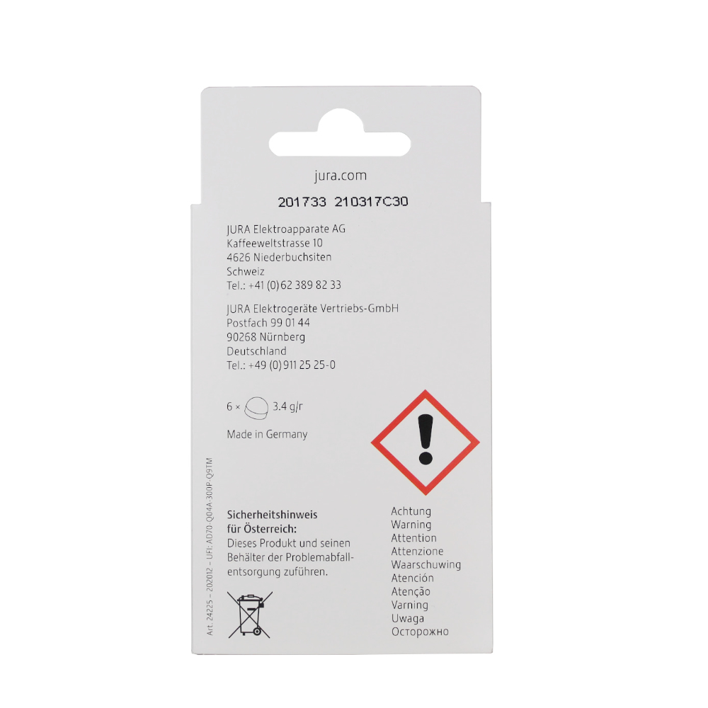 Lieferumgang: 1 x Packung JURA Reinigungstabletten (6 Stück für insg. 6 Reinigungen)